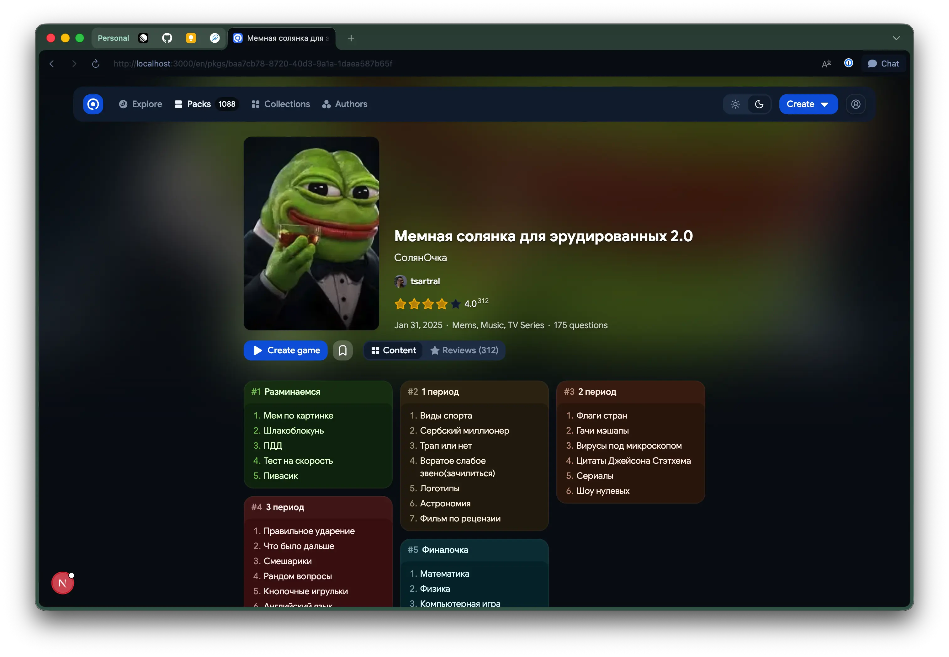 - Увеличили максимальные лимиты на раунды и темы в паках.